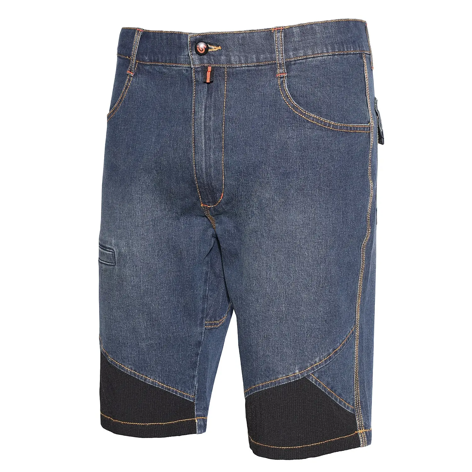 Jeans bermuda dal taglio sportivo con rinforzi in tessuto simil cordura anti abrasione che, assieme al rinforzo posteriore, accentua la robustezza.