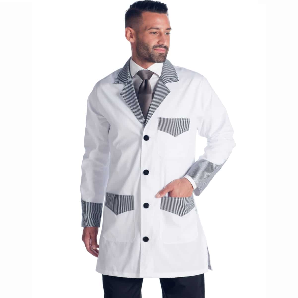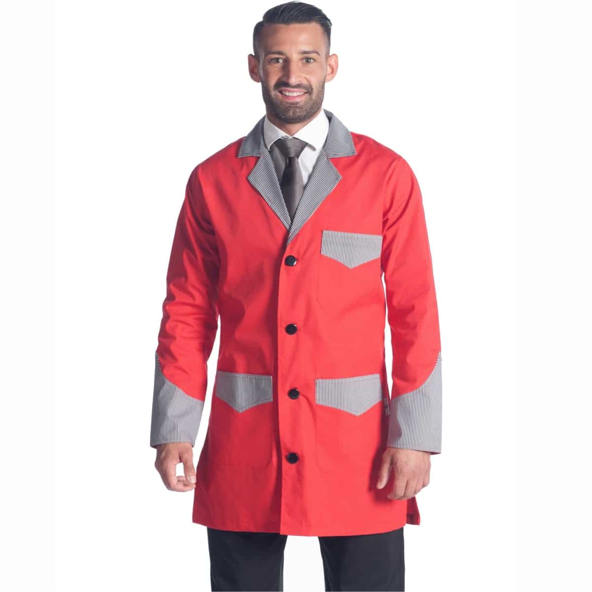 Pratica casacca uomo dal taglio sciancrato, chiusura con bottoni.
