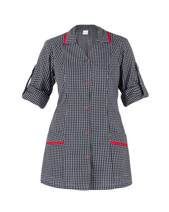 È caratterizzata da due tasche e dal collo a camicia con sbieco a contrasto, abbottonatura con classica anellina e manica arrotolabile con alamaro interno.
