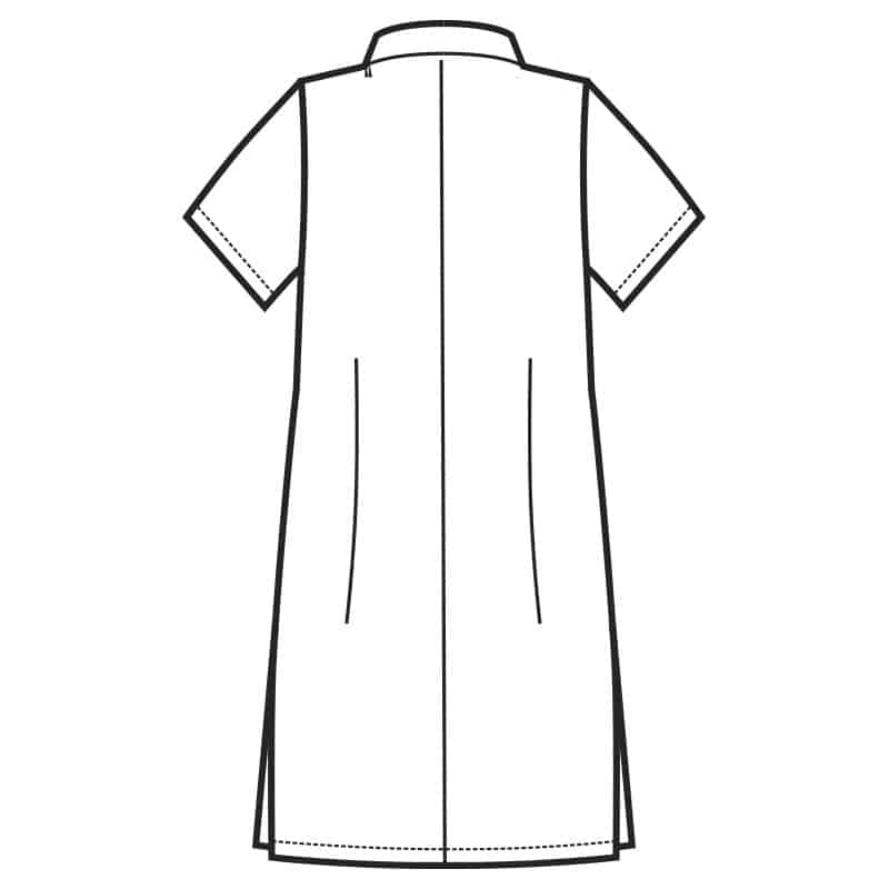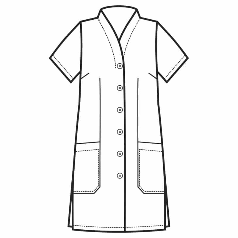 L’indumento è sciancrato con bottoni, 2 tasche e presenta collo a V.