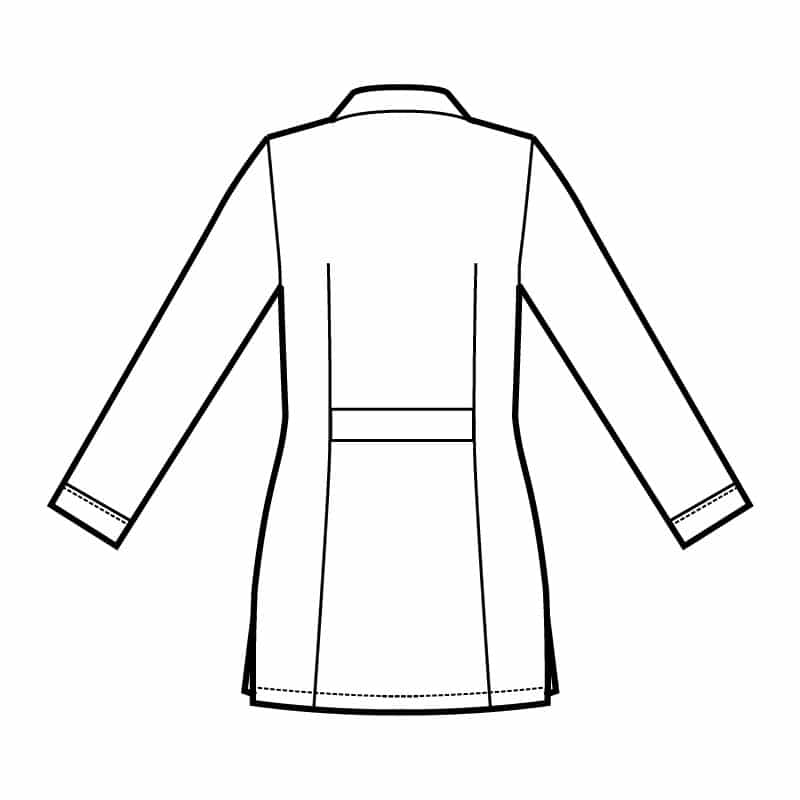 Con martingala sulla schiena e chiusura con bottoni, collo a lancia, con 2 tasche ed un taschino cuore.