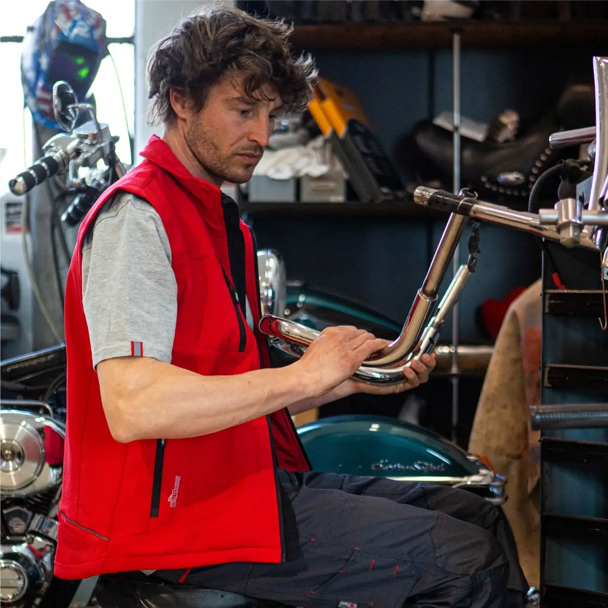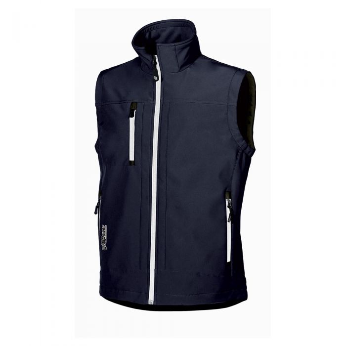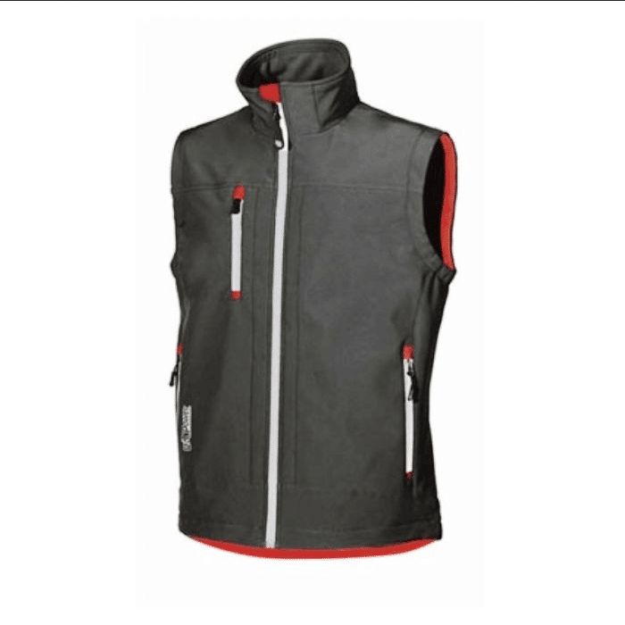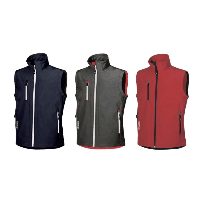 Gilet da lavoro in tessuto Soft Shell stretch traspirante antivento e idrorepellente.