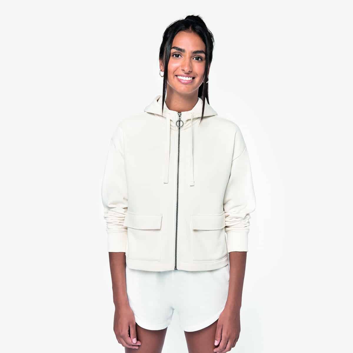 Finitura interna della zip con sbieco di rinforzo in jersey.