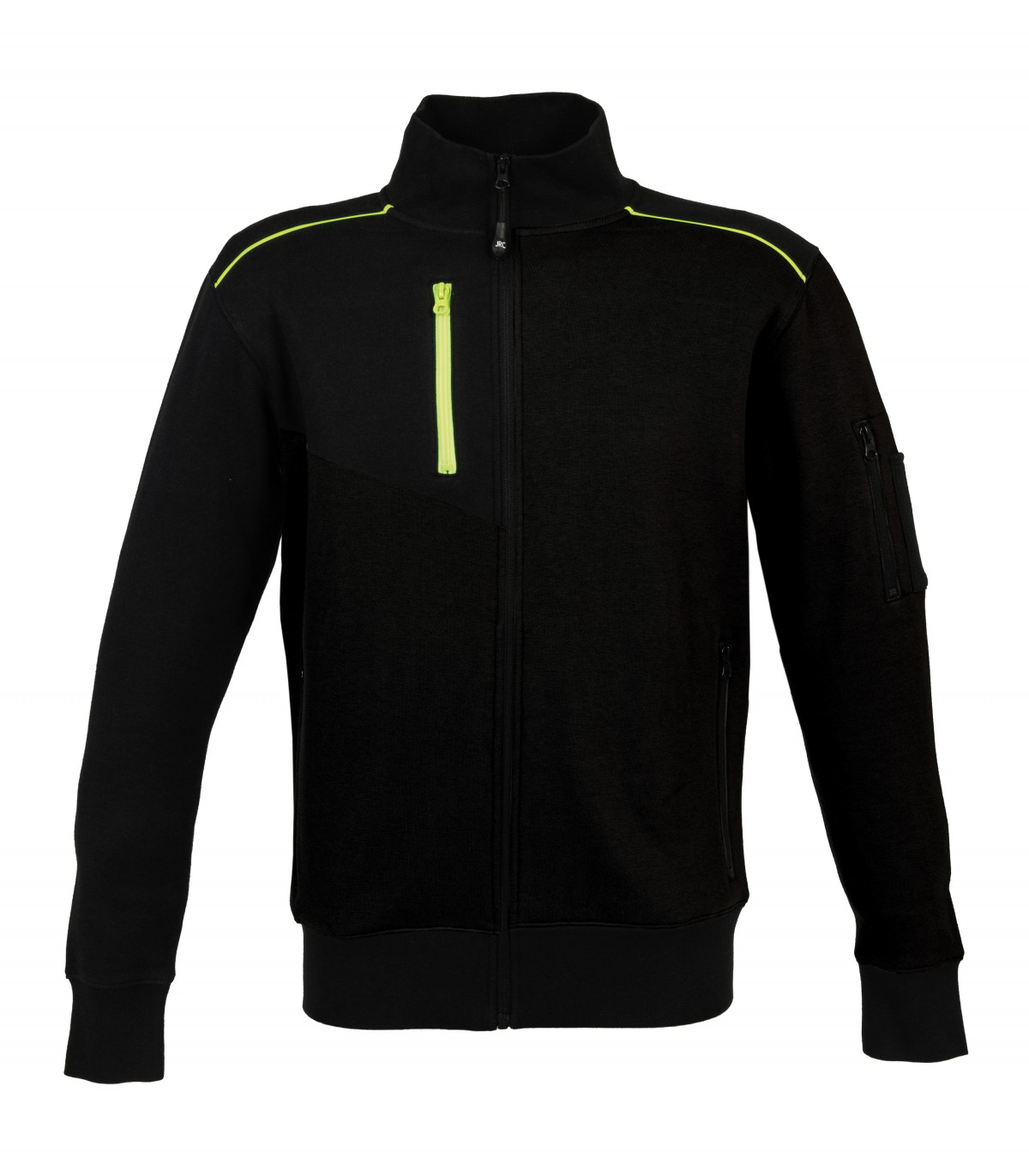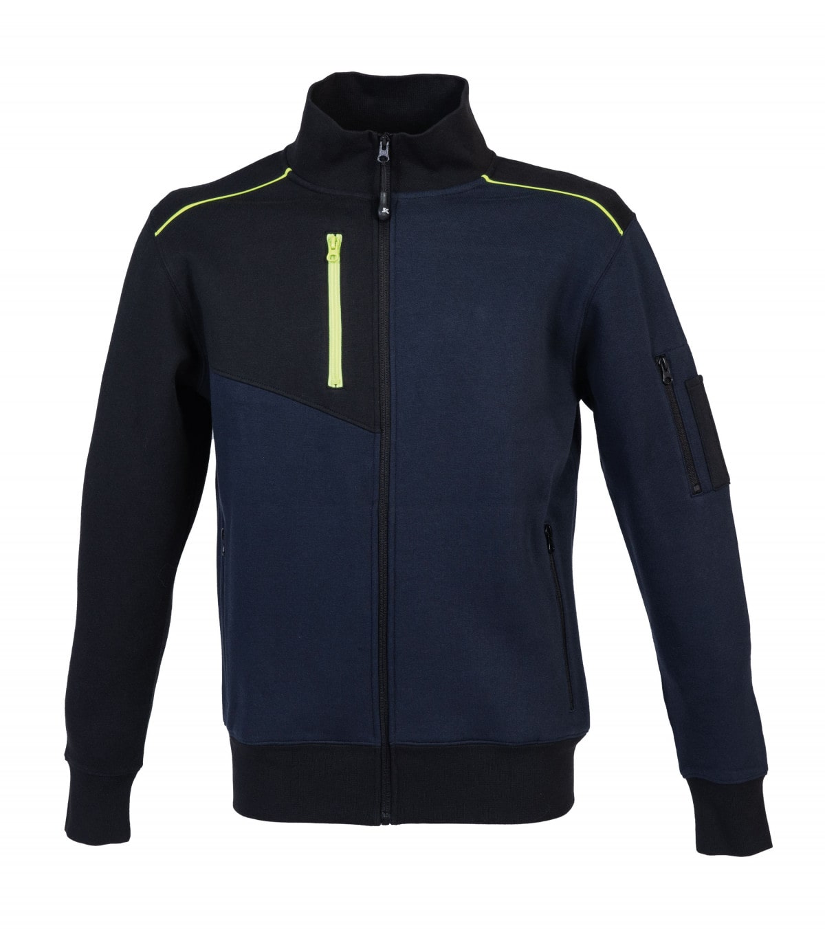 - 1 tasca con zip sul petto, 1 tasca con zip e doppio portapenne sul braccio, 2 tasche con zip