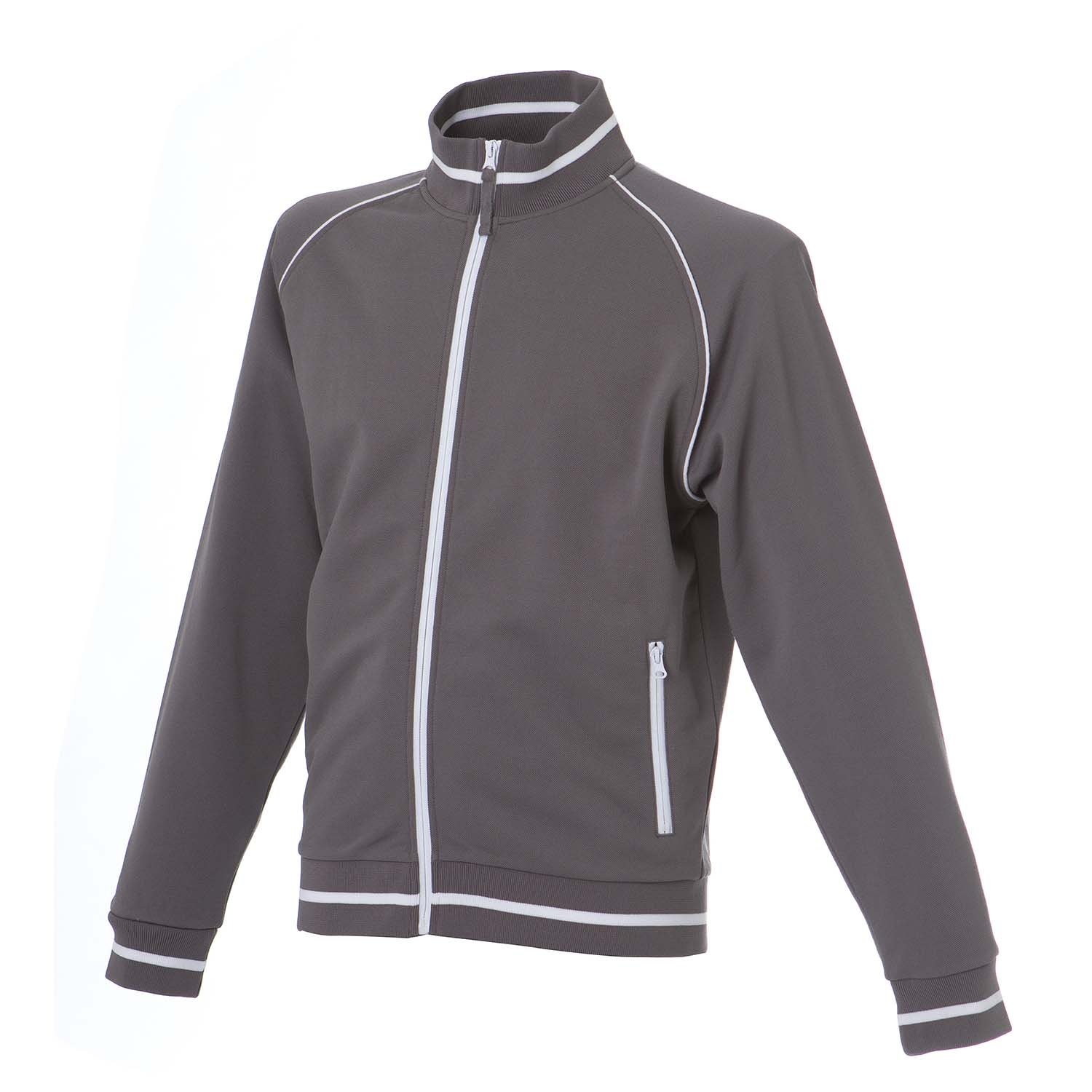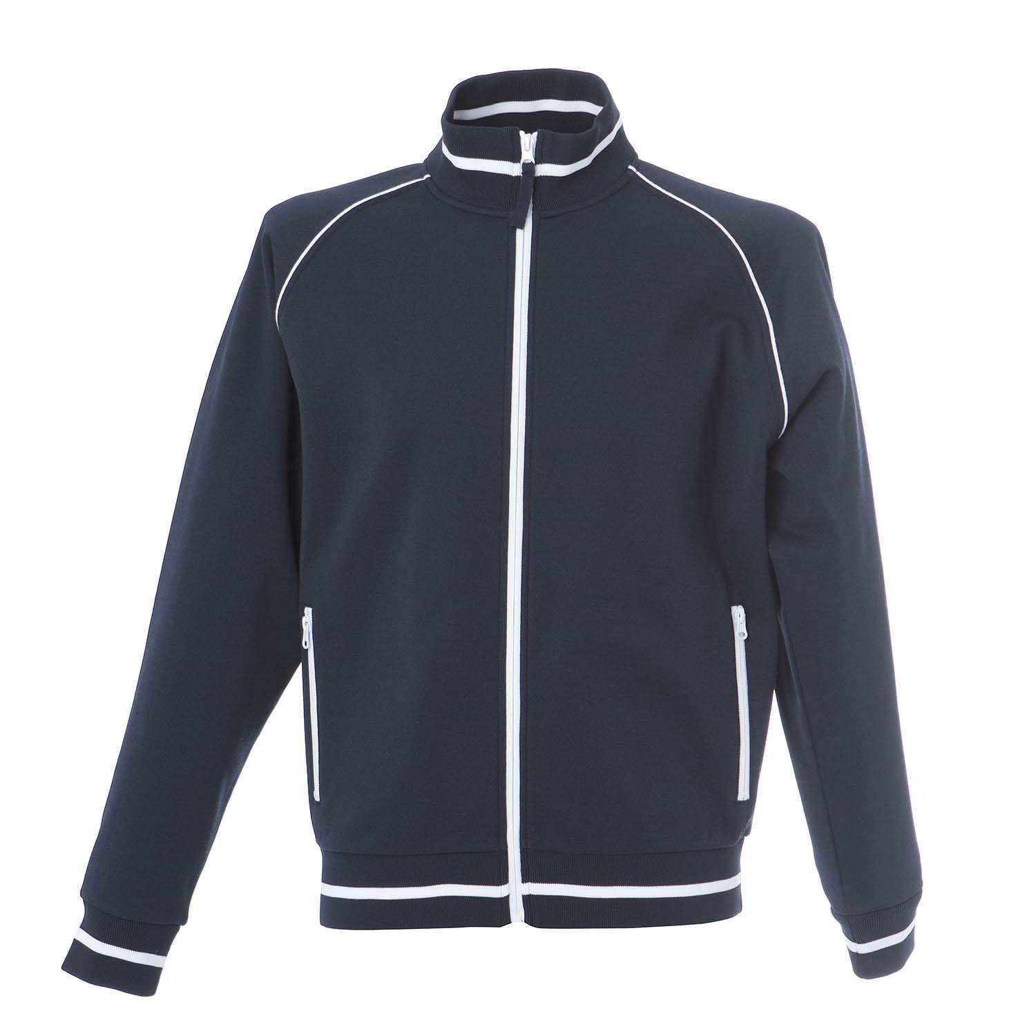 - Polsini e fondo maglia in costina elasticizzata con riga in contrasto