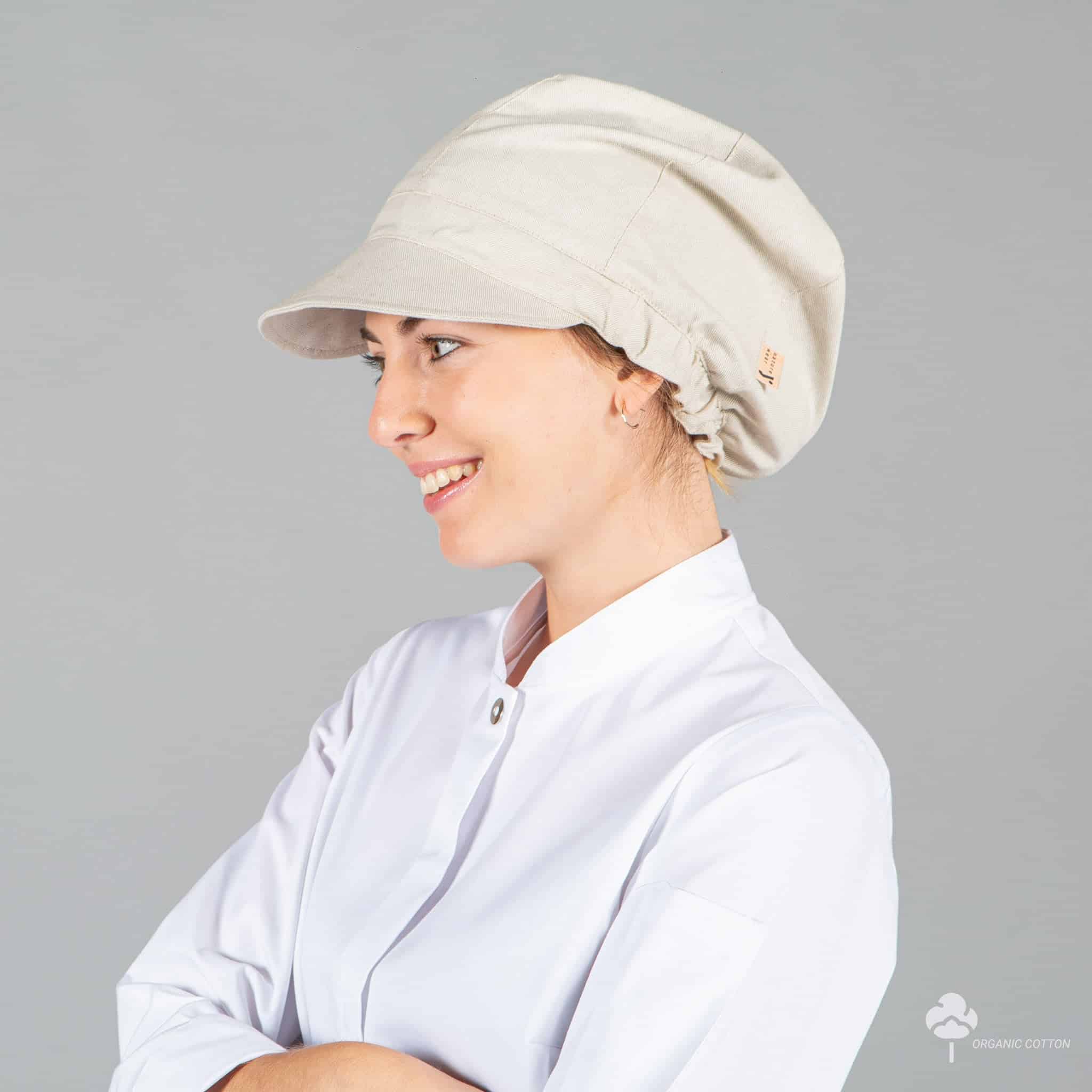 Cappello cucina stile vintage con elastico. Tessuto Klopman in cotone organico/poliestere riciclato 180 gr. Unisex taglia unica regolabile.