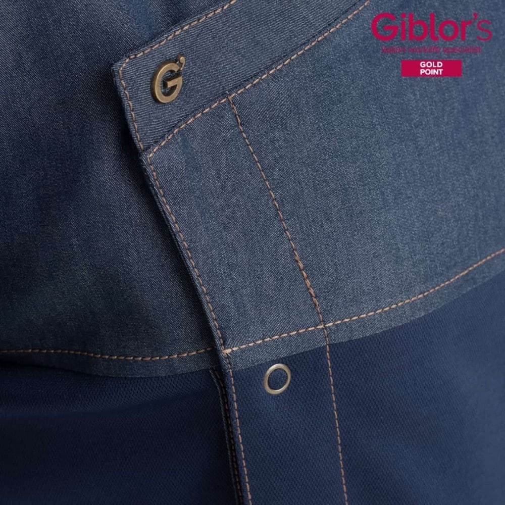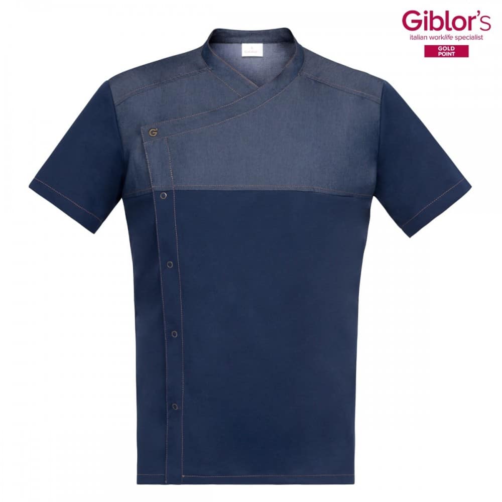 Giacca cuoco Giblor’s Lapo Blu Jeans, un must dallo stile dinamico e ricco di personalità.