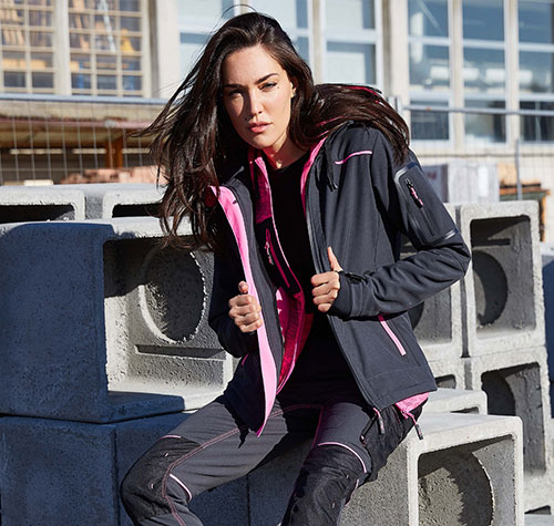 Giacca da lavoro donna U-Power Space in softshell grigio fucsia