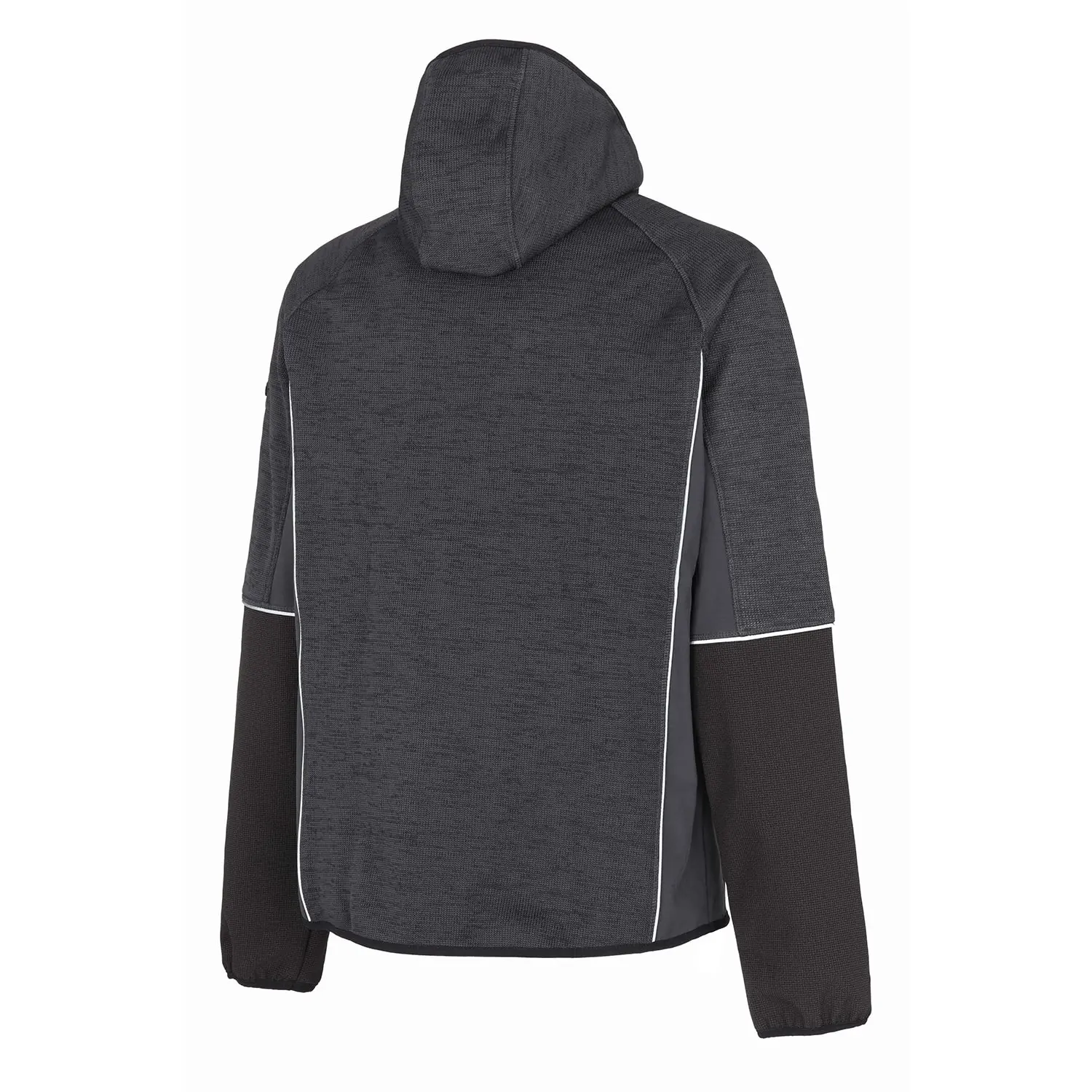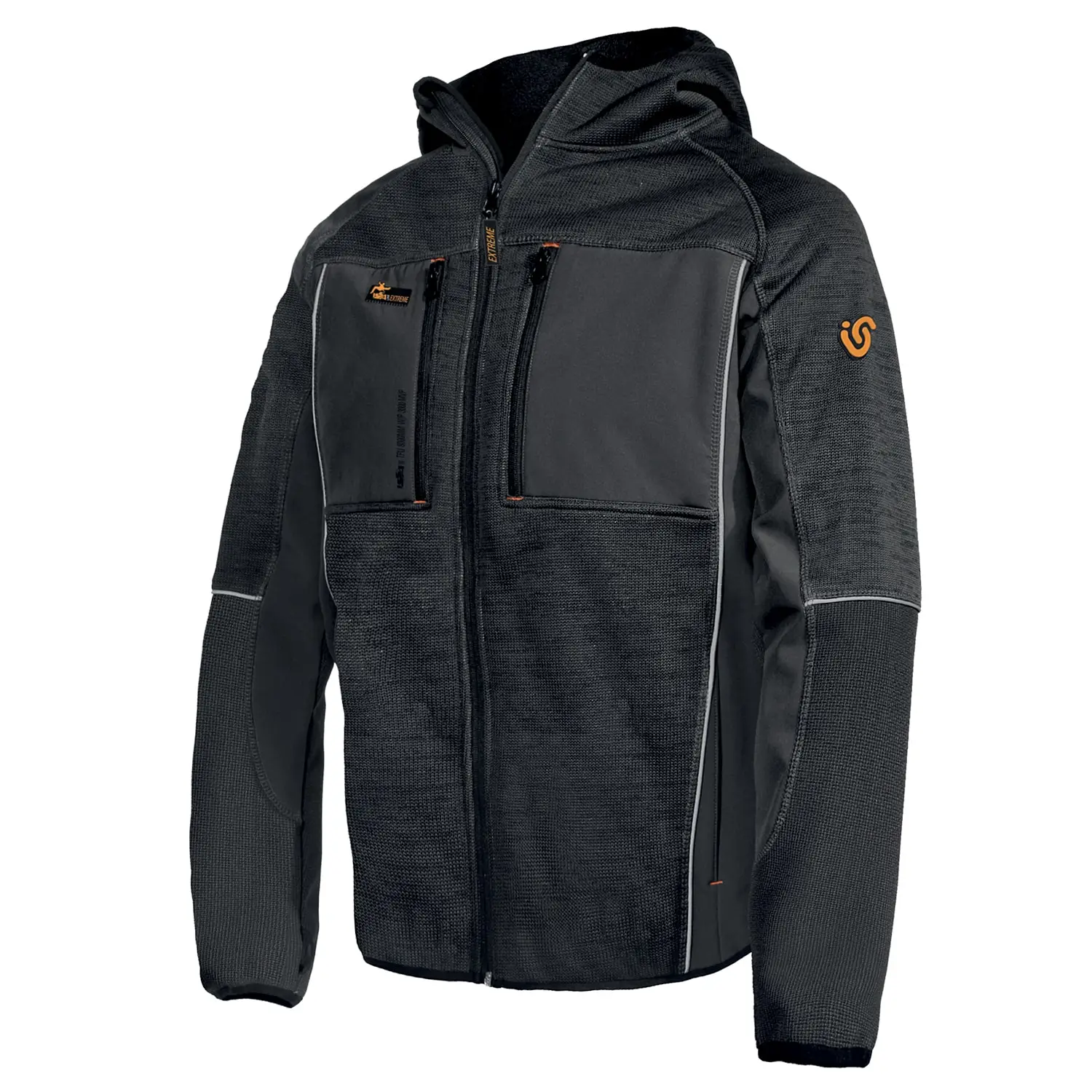 Il tessuto in Softshell in maglia, poliestere e spandex, accoppiato a micropile e membrana TPU impermeabile, traspirante, risulta eccellente per proteggersi dal freddo, l’umido e il vento; è corredata da 4 tasche esterne molto ampie, 2 interne, cappuccio fisso e rinforzi sulle zone di maggiore usura.