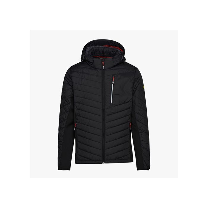 Giacca imbottita leggera, con cappuccio staccabile con frontino e doppia regolazione. Fit comfort grazie alle maniche ergonomiche e agli inserti in materiale stretch. Parte posteriore più lunga per miglior vestibilità. Tasca laterale con taschino di sicurezza interno, tasca laterale e tasca in zona petto tutte con chiusura zip. Tre tasche interne. Fondo regolabile con coulisse. Dettagli reflex.