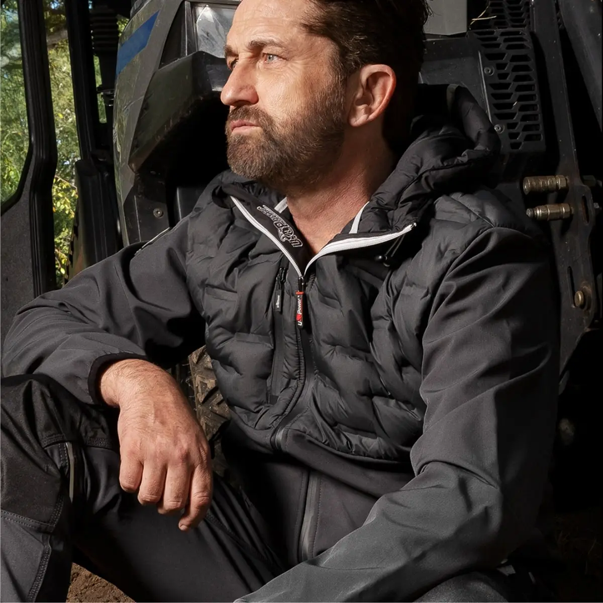 Giacca piumino da lavoro U-Power Spock in softshell grigio meteorite. Giacca ibrida idrorepellente traspirante e antivento estremamente versatile e ideale per chi svolge lavori dinamici in ambienti freddi o medio temperati senza però rinunciare alla libertà di movimento.
