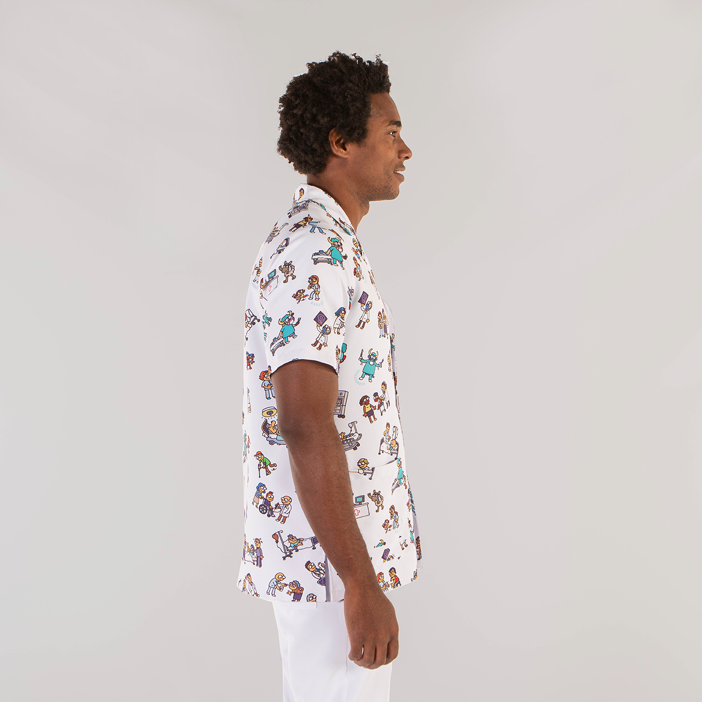 È un capo ideale per le uniformi di infermieri, medici, pediatri e altri operatori sanitari in ospedali, cliniche e centri medici, farmacie, laboratori, veterinari o negozi.
