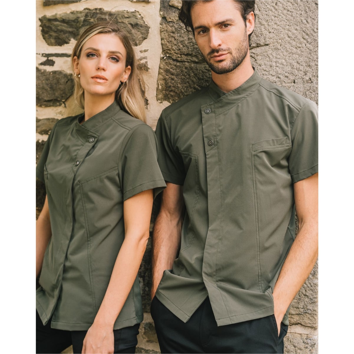 dall’abbottonatura nascosta, e dagli spacchi sul retro, il cui pannello è realizzato in rete per conferire maggiore traspirabilità.