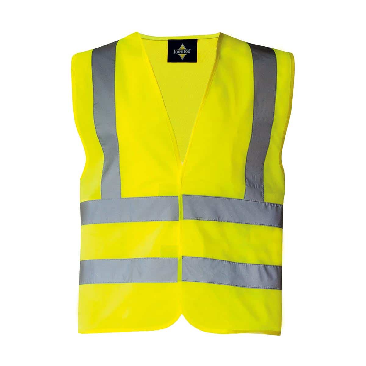Gilet di sicurezza con quattro fasce riflettenti. Colori giallo e arancione conformi alla normativa EN ISO 20471:2013 + A1:2016, Oeko-Tex® Standard 100, colore arancione conforme anche alla normativa GO/RT 3279, altri colori non conformi alla normativa EN ISO 20471:2013 + A1:2016. Due fasce riflettenti larghe 5 cm intorno al corpo, due fasce riflettenti larghe 5 cm perpendicolari alle spalle, misura regolabile grazie alla doppia chiusura con velcro. Confezionato singolarmente in una pratica borsa in polietilene.