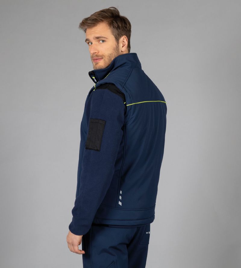 Gilet in soft shell a tre strati impermeabile e imbottito.