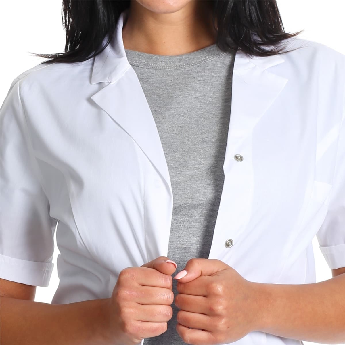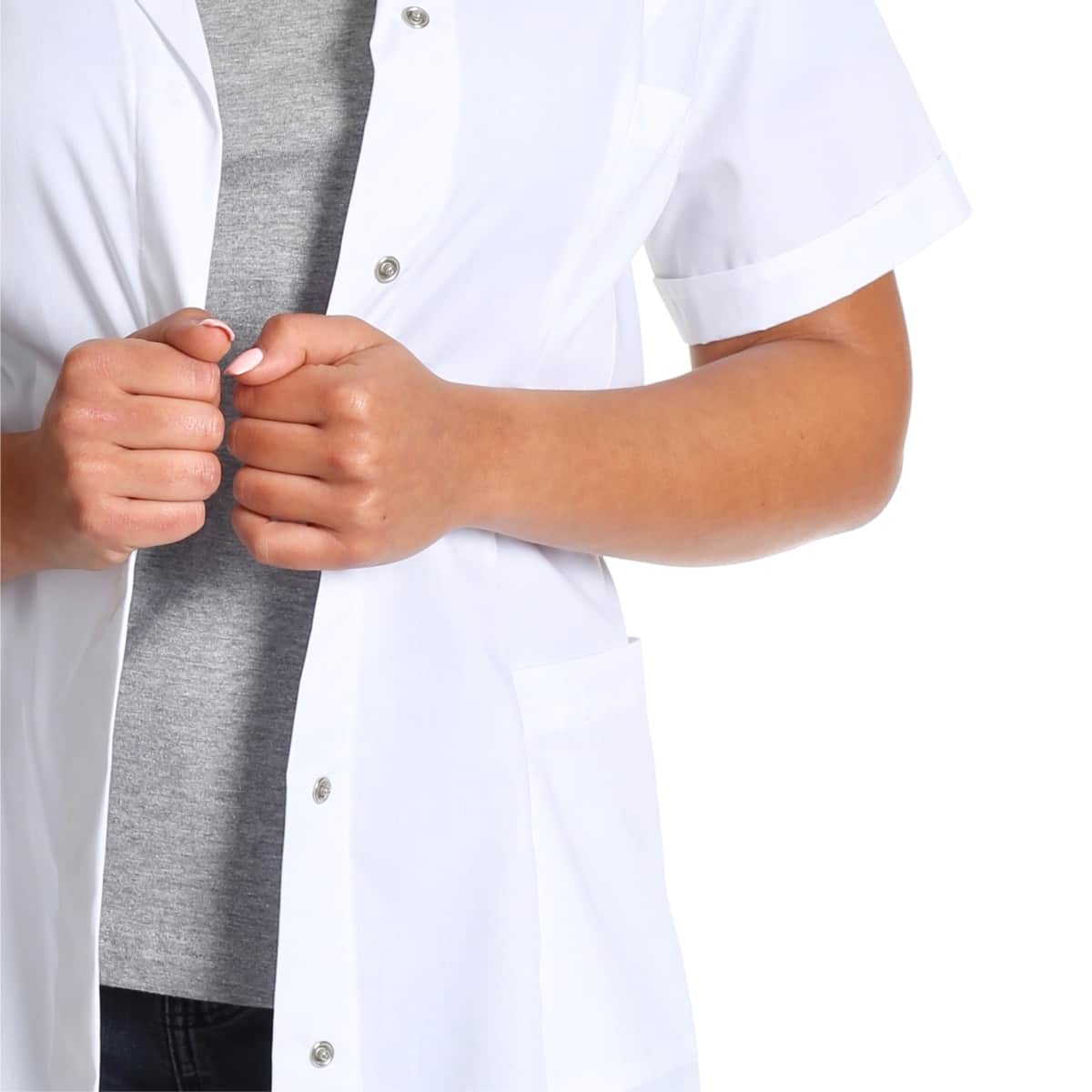 Se stai cercando un camice bianco elegante estivo che doni alla tua immagine professionalità, il camice Giulia è quello che fa per te. Un vero must sia per le sue linee essenziali che per i dettagli moda, dona alla figura slancio e personalità. Provalo accostato ai pantaloni modello Londra o Astra e personalizzalo con la stampa o il ricamo del tuo nome o logo!