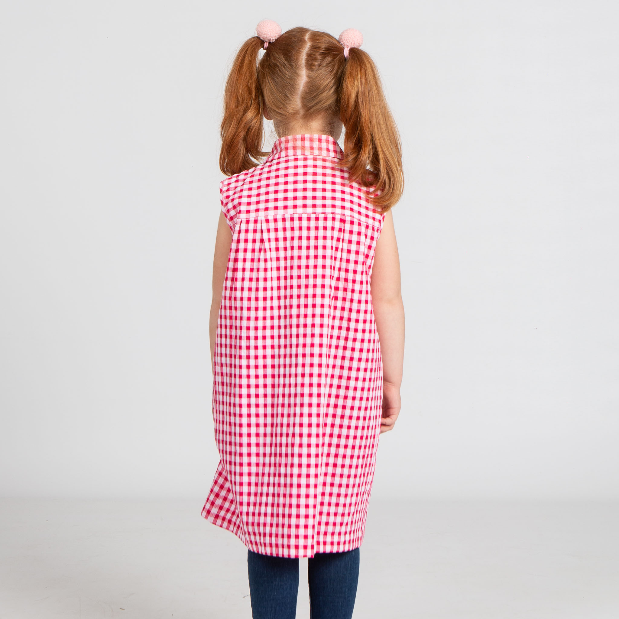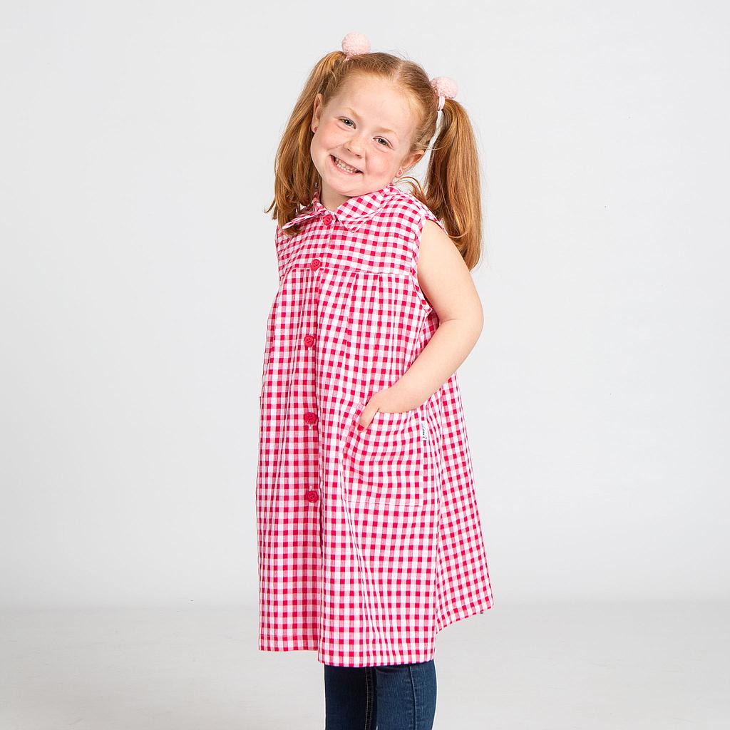 Facile da lavare e da stirare, disponibile in bambola a quadretti azzurri o fucsia.