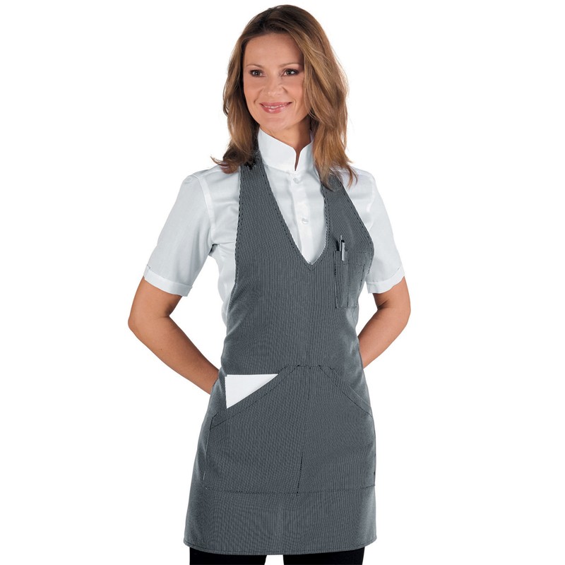 Se stai cercando un capo che doni alla tua immagine professionalità, il davantino Bistrò gessato è quello che fa per te. Un vero must sia per le sue linee essenziali che per i dettagli moda, dona alla figura slancio e personalità. Provalo accostato ai pantaloni modello Londra o Astra e personalizzalo con la stampa o il ricamo del tuo nome o logo!