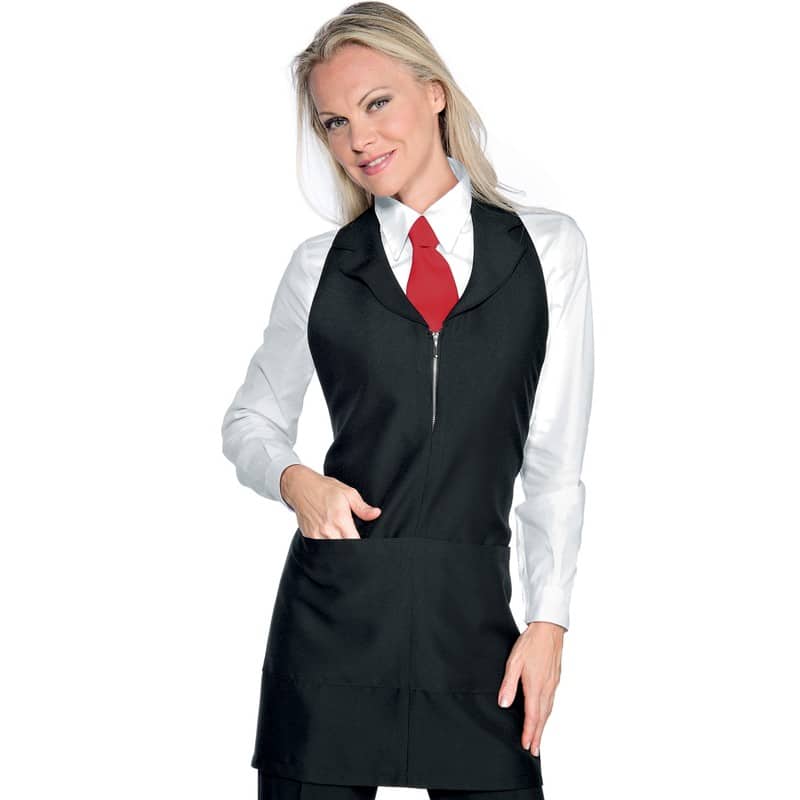 Se stai cercando un capo che doni alla tua immagine professionalità, il davantino Madeira nero è quello che fa per te. Un vero must sia per le sue linee essenziali che per i dettagli moda, dona alla figura slancio e personalità. Provalo accostato ai pantaloni modello Londra o Astra e personalizzalo con la stampa o il ricamo del tuo nome o logo!