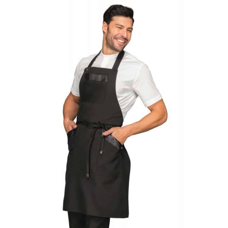 Grembiule nero con pettorina unisex.