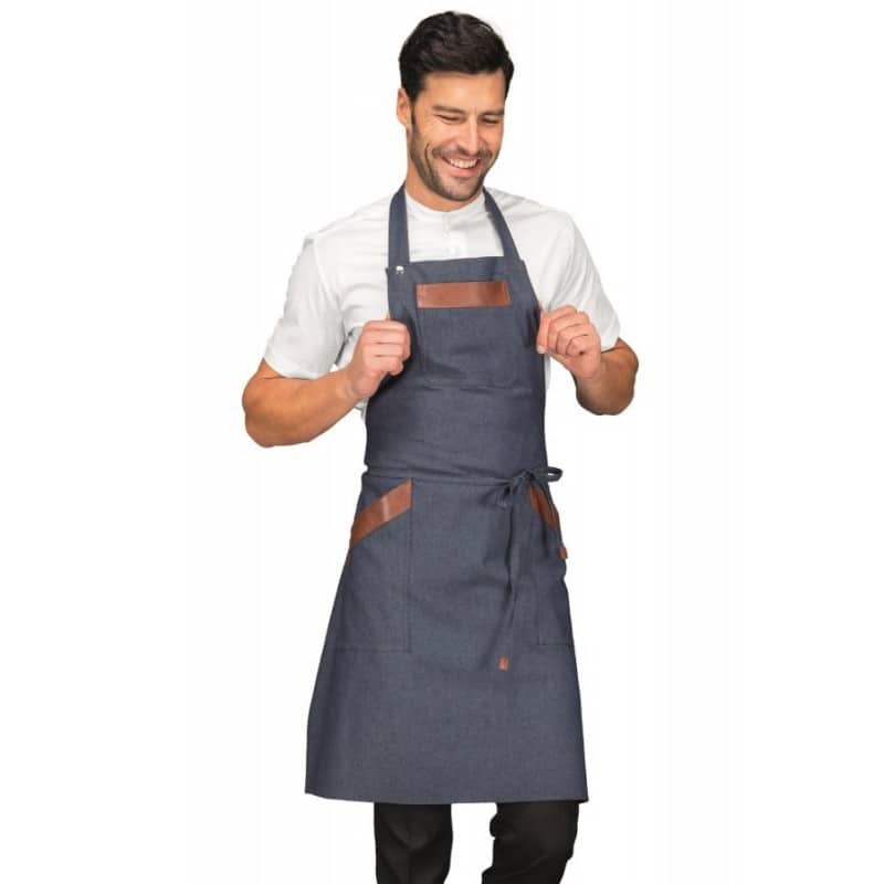Grembiule con pettorina unisex in tessuto effetto jeans.