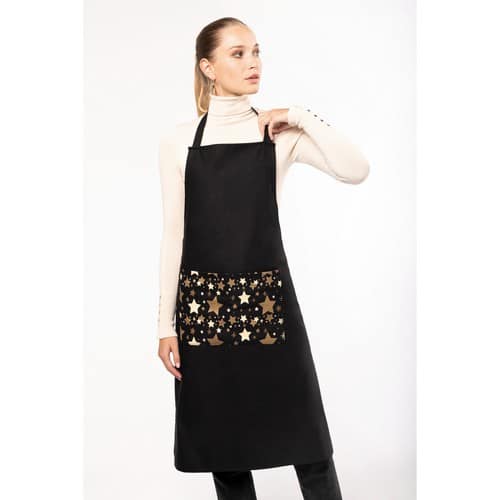 100% cotone. Lavaggio domestico a 60 °C. Fibbia in metallo sul laccio collo per regolare la lunghezza del grembiule. Ampia tasca con motivi a stella serigrafati sul davanti. Lacci di regolazione sul collo e girovita a contrasto in tinta naturale sul rosso e tono su tono sul nero. Etichetta “Origine France Garantie. Produit en Bretagne” sul davanti. Etichetta OFG (Origine France Garantie). Dimensioni: H 93 cm x L 78 cm. Tasca: H 21 cm x L 31 cm.