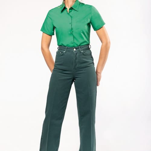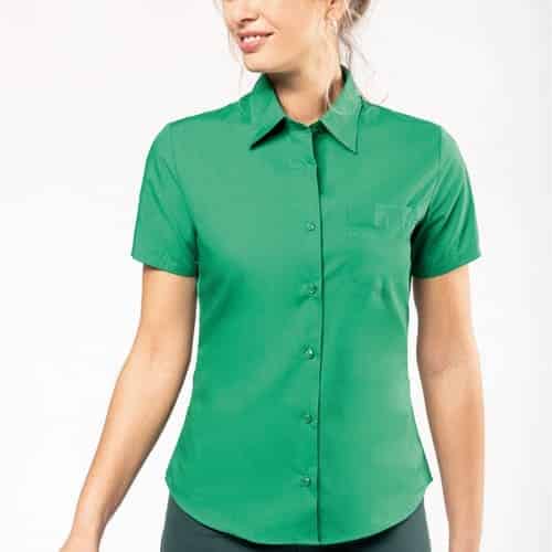 65% Poliestere / 35% Cotone Popeline. Tessuto facile da stirare. Colletto morbido. Bottoni tono su tono. Taschino lato sinistro. 1 bottone di riserva. Orlo stondato. Certificato STANDARD 100 by OEKO-TEX®