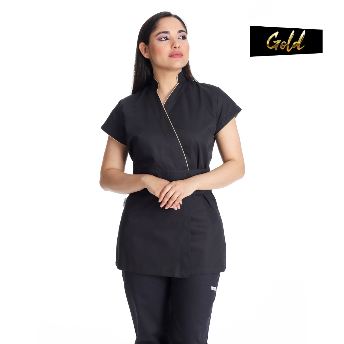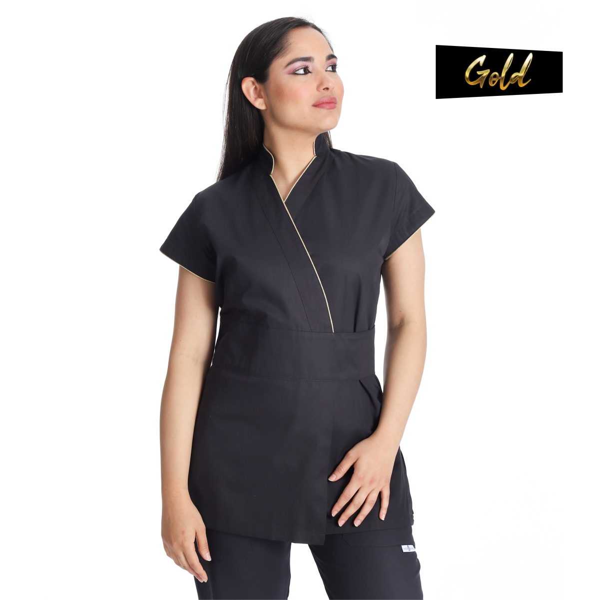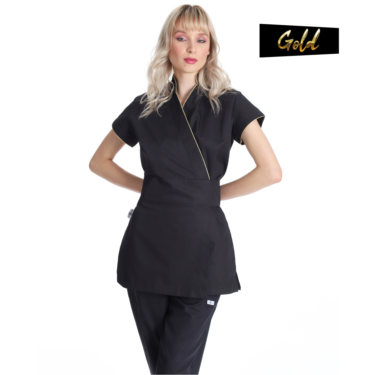 La divisa kimono estetica nero e oro è una scelta elegante per le estetiste che cercano di aggiungere un tocco di stile alla loro uniforme di lavoro. Questa tipologia di divisa è ispirata alla tradizionale vestizione giapponese, il kimono, ma è stata rivisitata per soddisfare le esigenze del mondo dell’estetica e del benessere.