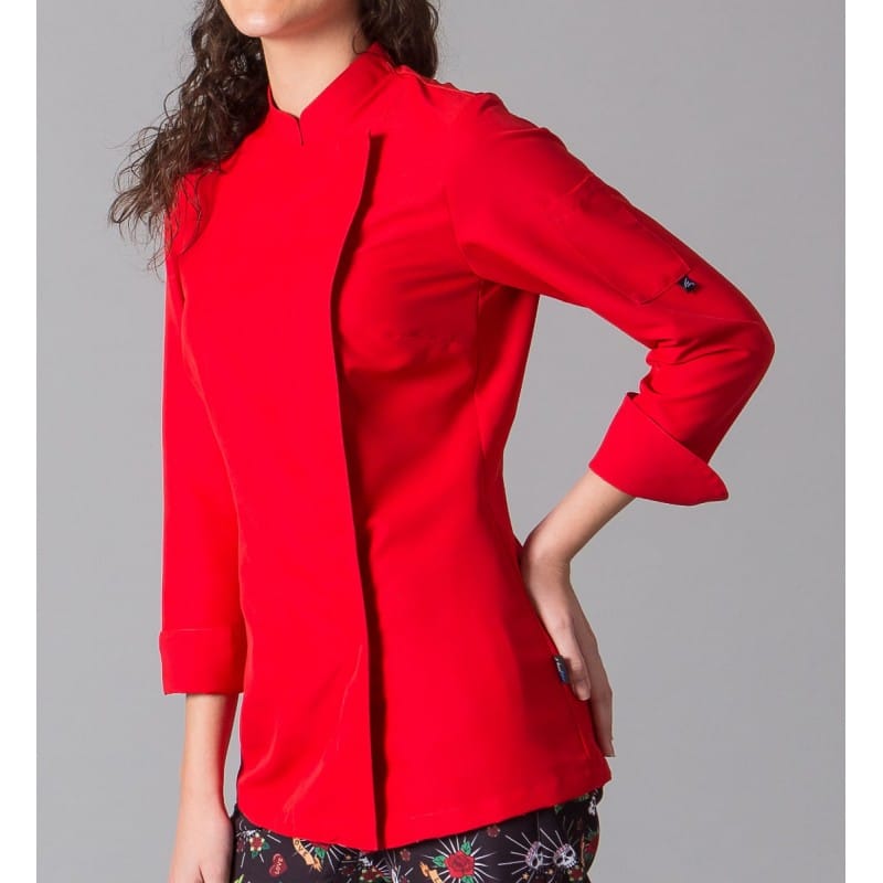 Giacca da donna a maniche lunghe con collo alla coreana, polsini arrotolati, una tasca sulla manica sinistra e chiusura doppiopetto con automatici nascosti. Modello semiaderente, con pinces sul petto e cuciture sul retro. Realizzata in MICROFIBRA 100% Poliestere, un tessuto antibatterico, altamente traspirante, tollerante agli schizzi di candeggina, lavabile a 90º, asciuga rapidamente, non necessita di stiratura ed è repellente per peli e pelo di animali domestici. Inoltre, ha AEROSILVER sul retro. Ideale per le divise di cuochi e chef di hotel, ristoranti e cucine in genere o per attività commerciali. Disponibile anche nel modello a maniche corte referenza 948600 o per uomo referenza 944100.