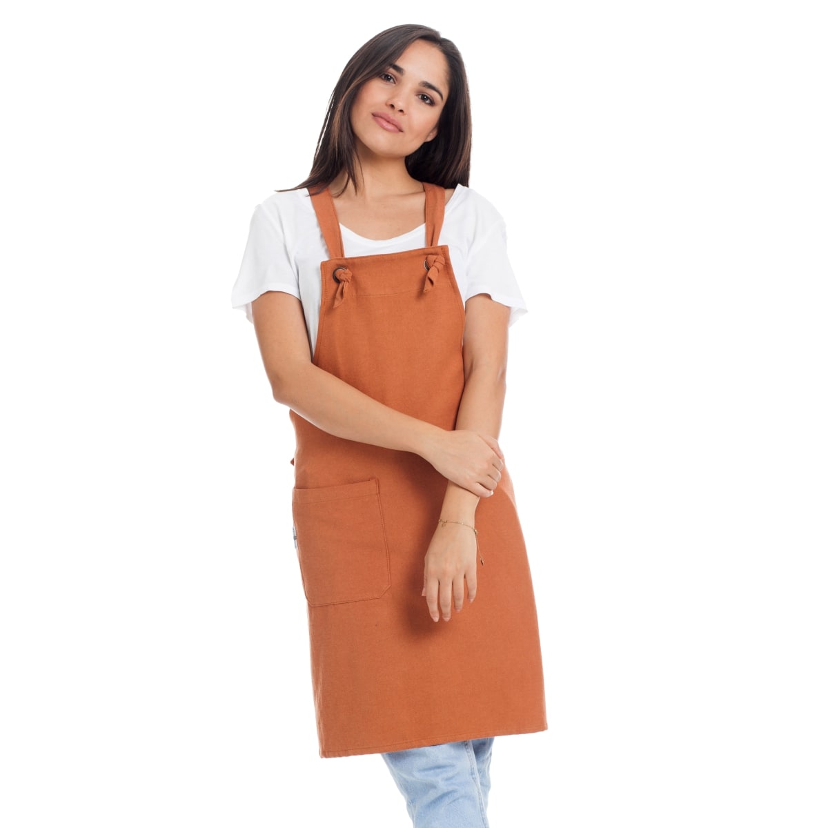 Pratico copriabito a salopette. Taglia unica regolabile.