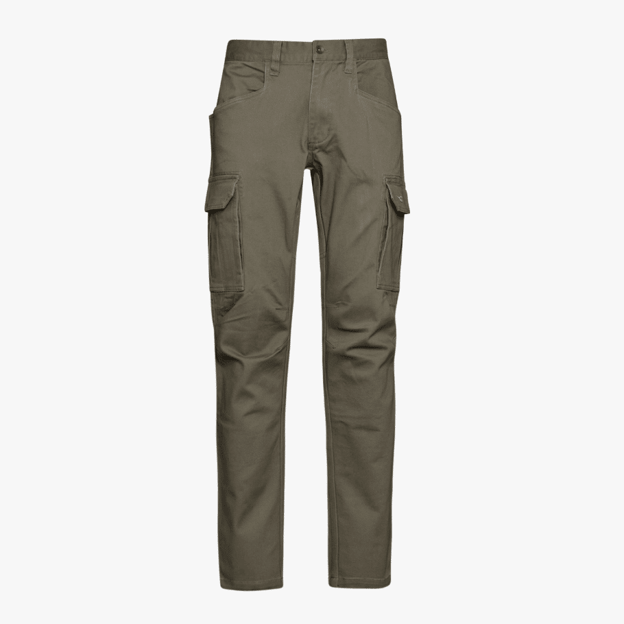 Pantalone cargo sette tasche: due tasche aperte frontali, tasconi laterali, due tasche aperte posteriori con bottone a pressione e taschino portametro. Vestibilità asciutta, ginocchio ergonomico. Capo lavato e tessuto mano calda. Toppa di rinforzo sul cavallo posteriore. Vestibilità asciutta, ginocchio ergonomico.