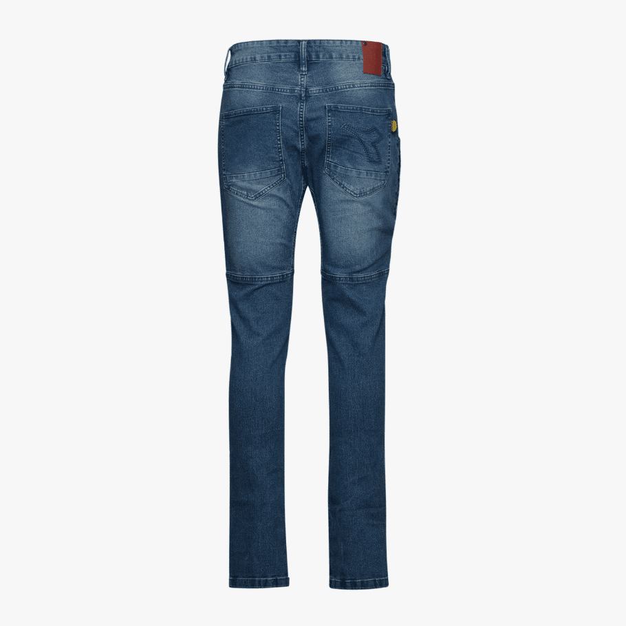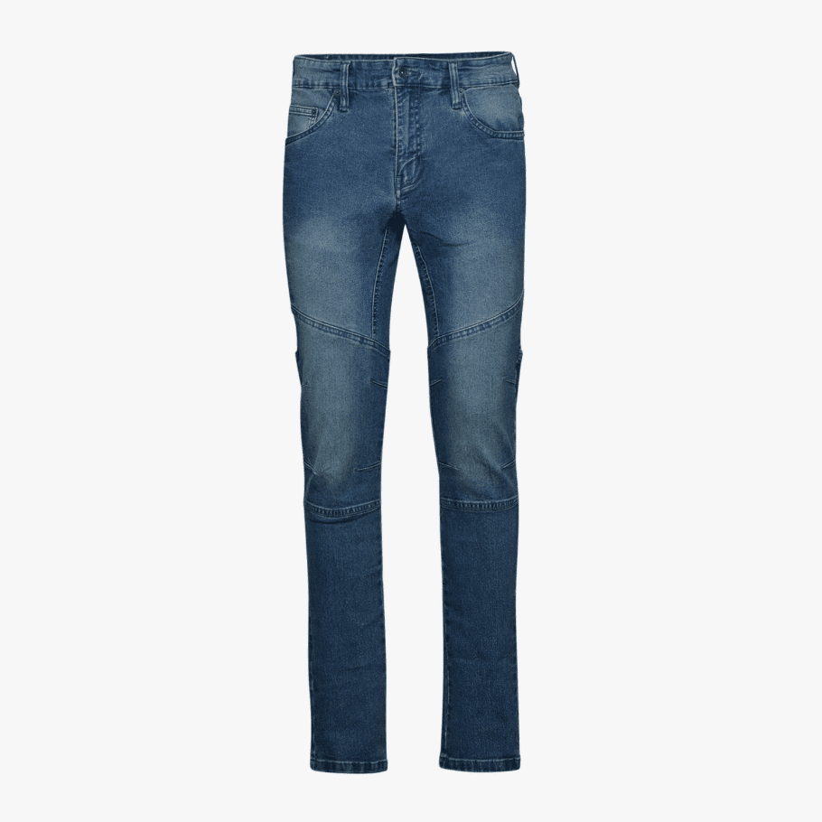 Denim 6 tasche, di cui una laterale con zip. Stone washed, elasticizzato, trattamenti e cura dei dettagli tipici della tradizione della jeanseria italiana. Tassello sul cavallo per favorire il comfort. Pence sulle ginocchia per una maggiore ergonomia.