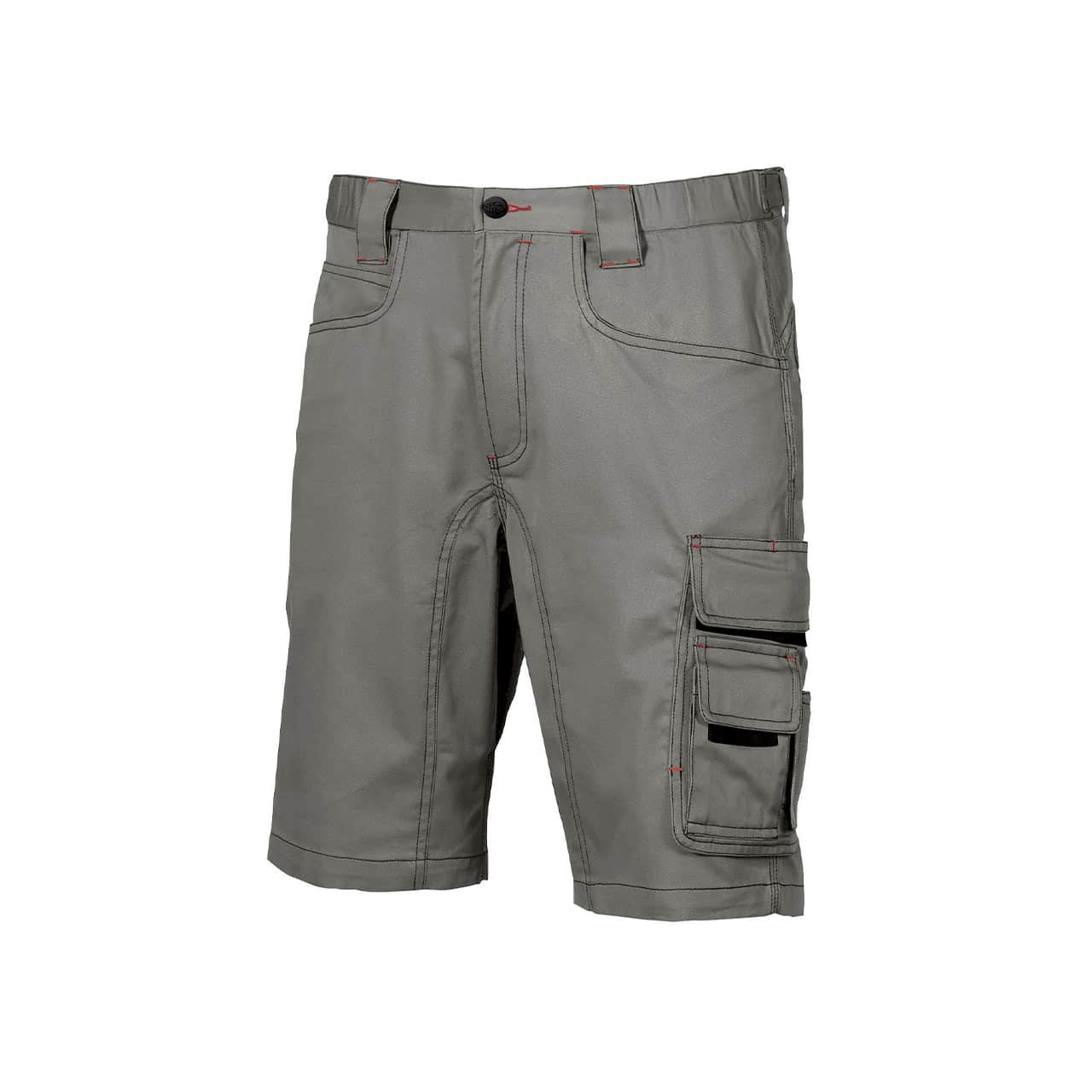 Pantaloni corti da lavoro U-Power Party grigio. Bermuda dotato di 2 ampie tasche anteriori, tasca laterale portautensili, tasca laterale multifunzionale, portabadge, 2 tasche posteriori con chiusura di sicurezza a velcro; porta martello regolabile; regolazione in vita con elastico per massimo comfort.