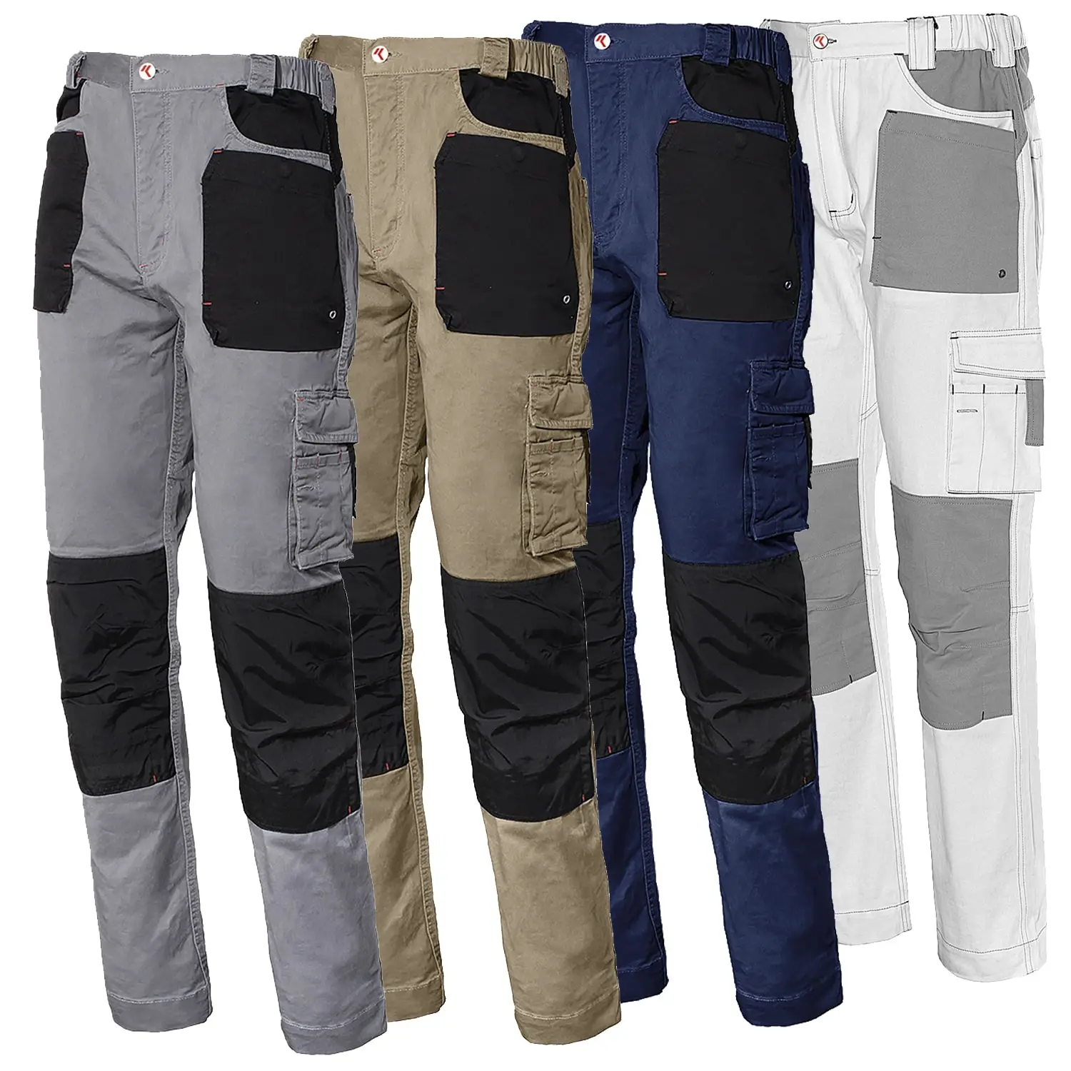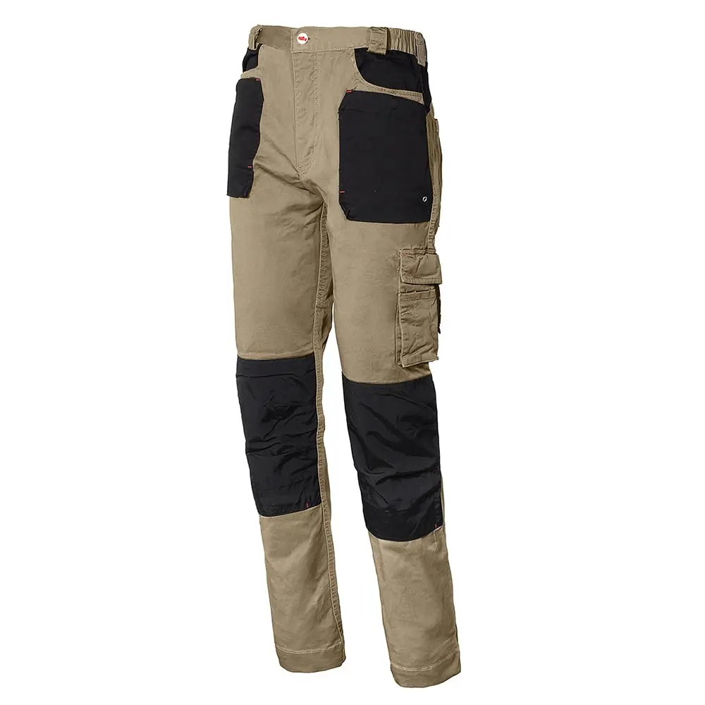 Pantaloni da lavoro porta ginocchiere, in pratico tessuto stretch che segue i movimenti del corpo.