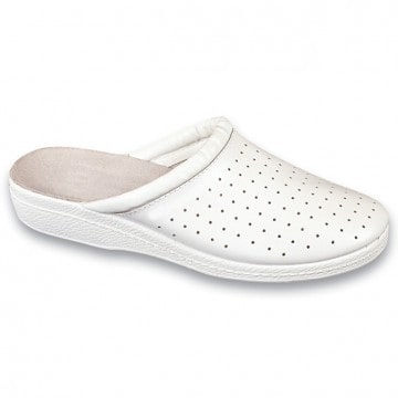 Se stai cercando delle ciabatte da lavoro bianche in offerta che donino alla tua immagine professionalità, la pianella con fori è quello che fa per te. Un vero must sia per le sue linee essenziali che per i dettagli moda, dona alla figura slancio e personalità. Provalo con i pantaloni modello Londra o Astra e personalizzalo!