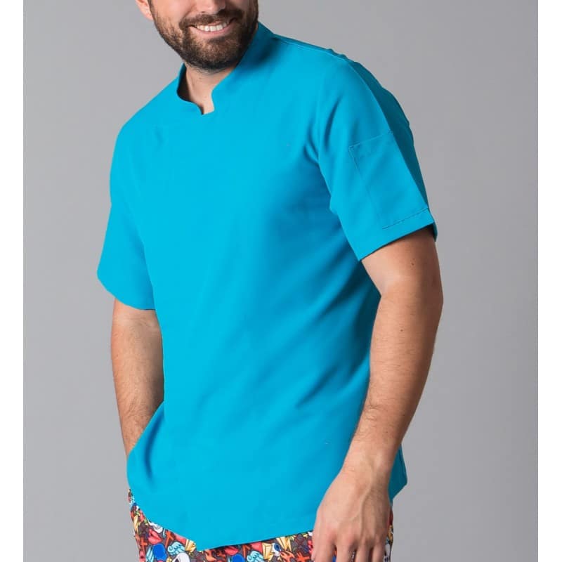 Giacca da uomo a maniche corte con collo alla coreana, taschino sulla manica sinistra e chiusura doppiopetto con automatici nascosti. Modello semiaderente, con cuciture sul retro. Realizzata in MICROFIBRA 100% Poliestere, un tessuto antibatterico, altamente traspirante, tollerante agli schizzi di candeggina, lavabile a 90º, asciuga rapidamente, non necessita di stiratura ed è repellente per peli e pelo di animali domestici. Inoltre, ha AEROSILVER sul retro. Ideale per cuochi e chef divise in hotel, ristoranti e cucine in genere o per il commercio. Disponibile anche con modello a maniche lunghe codice 944100 o da donna codice 948600.