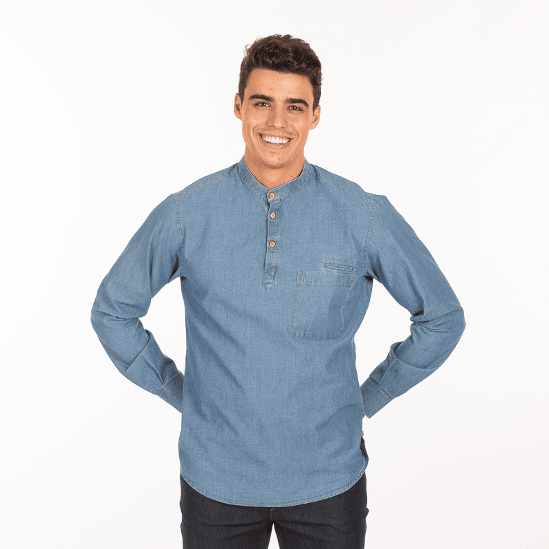 Raffinata camicia in jeans dal look vintage.