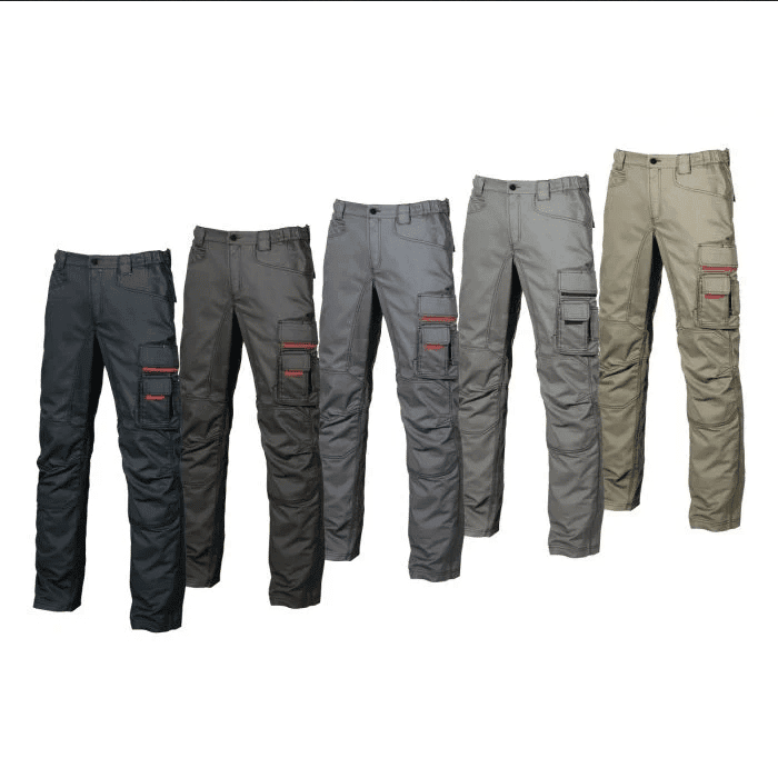 I Pantaloni da lavoro U Power Smile sono realizzati in Twill cotone 60% e poliestere 40%, 245 g/m2, molto adatti per la stagione più fredda e particolarmente utilizzati da muratori, magazzinieri, artigiani, falegnami, metalmeccanici ecc; completati con accessori e tasche di varia grandezza per accogliere utensili e attrezzi da portare sempre a portata di mano, risultano particolarmente resistenti all’usura e ai frequenti lavaggi.