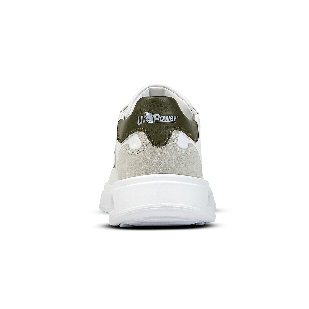 - Tomaia in pelle bianca morbida, con il logo e la zona tallone in sovraccolore