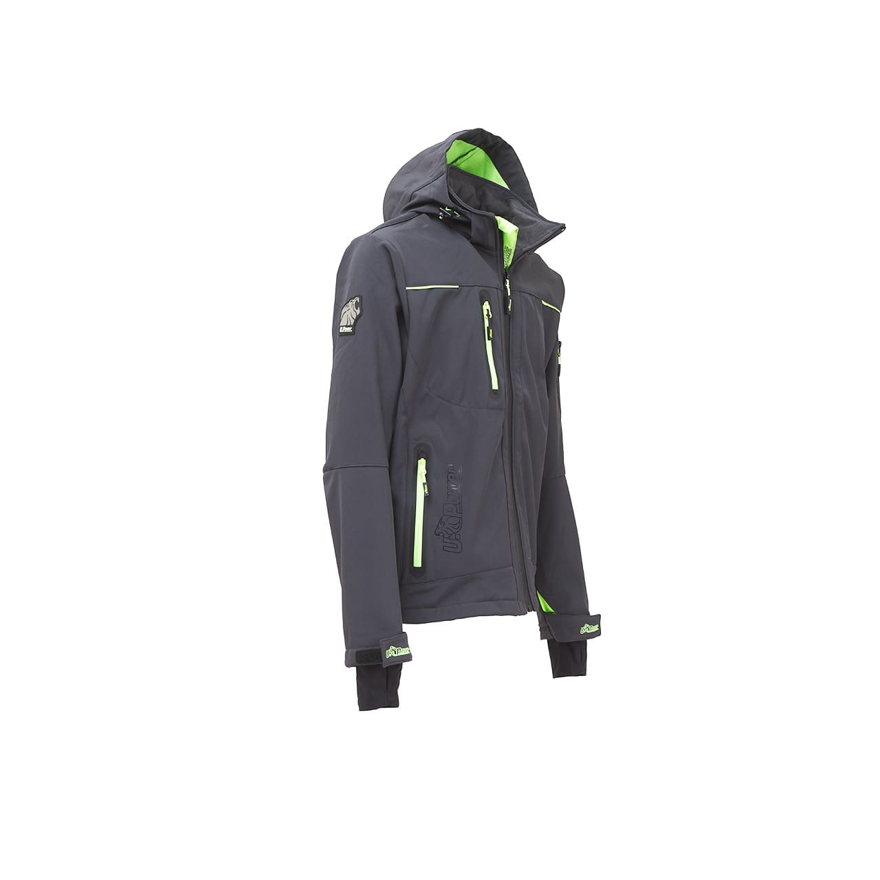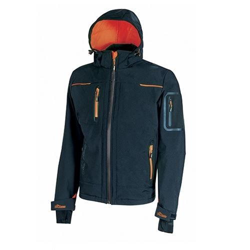 Giacca in Softshell con membrana U-Tex che rende il tessuto impermeabile, traspirante e antivento.
