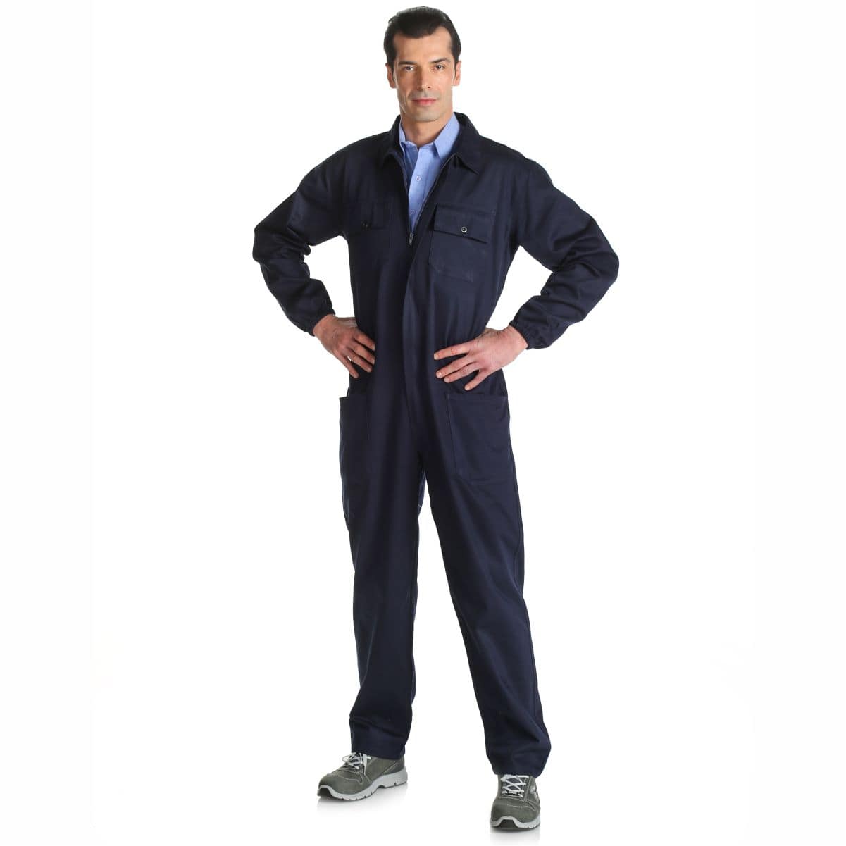 Tuta da lavoro dal taglio classico.