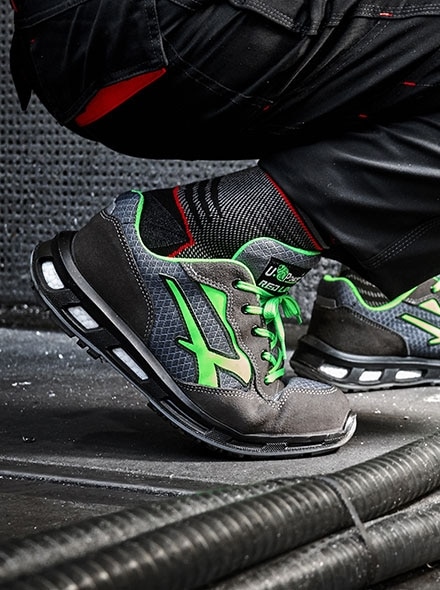 Scarpa alta antinfortunistica RedLion®, con puntale AirToe® in alluminio e sistema antiperforazione tessile “no metal” Save & Flex Plus, progettata per garantire un benessere prolungato del piede. Leggere, comode, con tomaia in nylon ultra traspiranti e morbida pelle scamosciata, elevata traspirazione e chiusura con lacci e soffietto di nylon imbottito per garantire elevato comfort della calzata. Queste scarpe da lavoro sono in grado di garantire comfort e leggerezza grazie alla suola con innovativo sistema Infinergy® e all’intersuola in PU espanso. Il tacco polifunzionale e il battistrada in PU compatto offrono aderenza, sicurezza e stabilità della postura. Questa calzatura rispetta gli standard di sicurezza S1P SRC ESD e è adatta all’uso in ambienti umidi, trasporti e logistica, settore terziario e dei servizi.