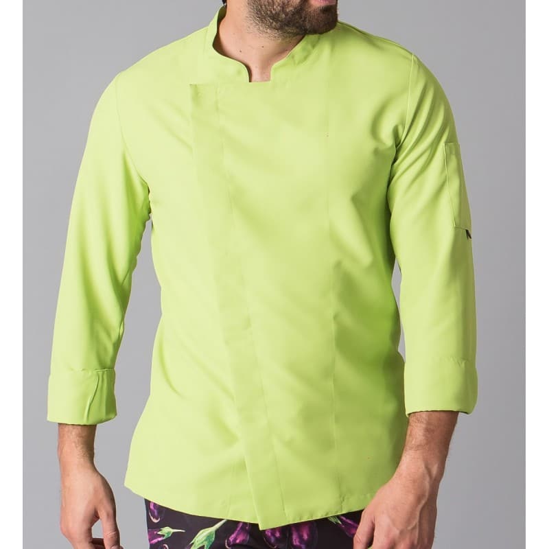 Giacca da uomo a maniche lunghe con collo alla coreana, polsini arrotolati, una tasca sulla manica sinistra e chiusura doppiopetto con automatici nascosti. Modello semiaderente, con cuciture sul retro. Realizzata in MICROFIBRA 100% Poliestere, un tessuto antibatterico, altamente traspirante, tollerante agli schizzi di candeggina, lavabile a 90º, asciuga rapidamente, non necessita di stiratura ed è repellente per peli e pelo di animali domestici. Inoltre, ha AEROSILVER sul retro. Ideale per cuochi e chef divise in hotel, ristoranti e cucine in genere o per il commercio. Disponibile anche nel modello a maniche corte codice 944200 o per donna codice 948500