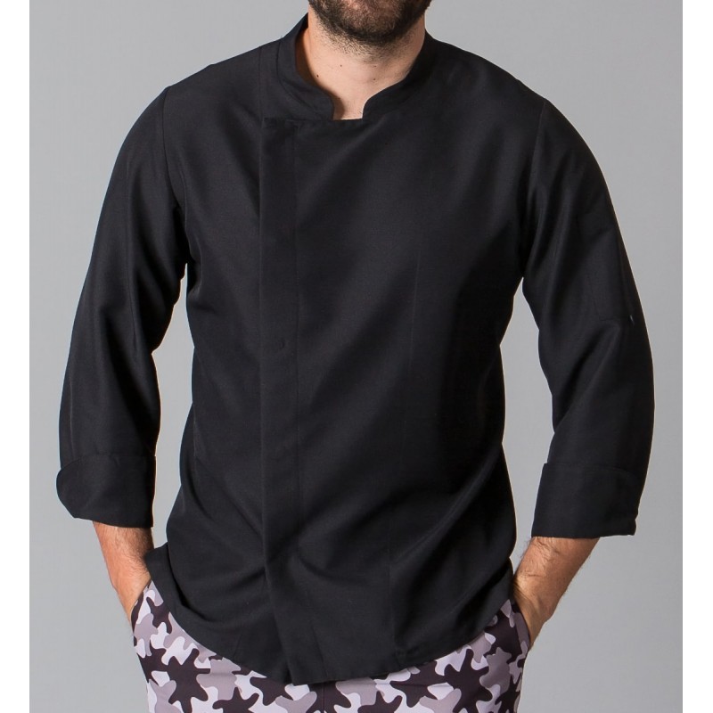Giacca da uomo a maniche lunghe con collo alla coreana, polsini arrotolati, una tasca sulla manica sinistra e chiusura doppiopetto con automatici nascosti. Modello semiaderente, con cuciture sul retro. Realizzata in MICROFIBRA 100% Poliestere, un tessuto antibatterico, altamente traspirante, tollerante agli schizzi di candeggina, lavabile a 90º, asciuga rapidamente, non necessita di stiratura ed è repellente per peli e pelo di animali domestici. Inoltre, ha AEROSILVER sul retro. Ideale per cuochi e chef divise in hotel, ristoranti e cucine in genere o per il commercio. Disponibile anche nel modello a maniche corte codice 944200 o per donna codice 948500