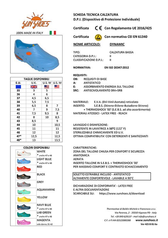 Dynamic è la più innovativa e completa calzatura sanitaria del mercato, conosciuta per l’estrema comodità grazie all’inserimento dell’innovativo materiale brevettato ‘Thermoshock 00’ nel tacco, che garantisce un assorbimento certificato molto maggiore di quanto richiesto dalla normativa, oltre alle migliori caratteristiche tecniche.